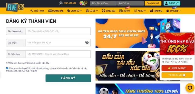 Nhà cái Five88 là một trong những nền tảng cá cược trực tuyến uy tín nhất hiện nay. Được thành lập với mục tiêu cung cấp dịch vụ cá cược an toàn và minh bạch, Five88 nhanh chóng trở thành điểm đến ưa thích của nhiều cược thủ. Khuyến mãi tại đây không chỉ đa dạng mà còn liên tục được cập nhật, tạo điều kiện thuận lợi cho người chơi.
