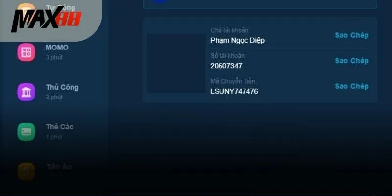 Đối với rút tiền, quy trình cũng tương tự nhưng ngược lại: chọn “Rút tiền”, điền số tiền muốn rút, điền đầy đủ thông tin tài khoản ngân hàng hoặc ví điện tử và xác nhận. Thời gian xử lý có thể dao động từ vài phút đến vài giờ tùy từng phương thức, nhưng Max88 luôn cố gắng duy trì tốc độ xử lý nhanh nhất.