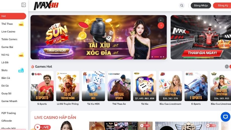Không chỉ thể thao, hệ thống casino trực tuyến của Max88 cũng sở hữu các trò chơi đặc sắc như baccarat, blackjack, roulette, slots, và game bài đổi thưởng với độ ổn định cao, đồ họa sắc nét, âm thanh sống động. Các trò chơi này đều được thiết kế dựa trên công nghệ tiên tiến, mang lại cảm giác chân thật như đang chơi tại sòng bạc thực thụ. Sự hấp dẫn của các trò chơi cá cược này còn nằm ở khả năng mang lại cơ hội thắng lớn, giúp người chơi vừa giải trí vừa có thể kiếm lợi nhuận xứng đáng.
